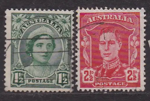 Australien, Mi-Nr. 164 + 166 gest., Königin Elisabeth + König Georg VI.