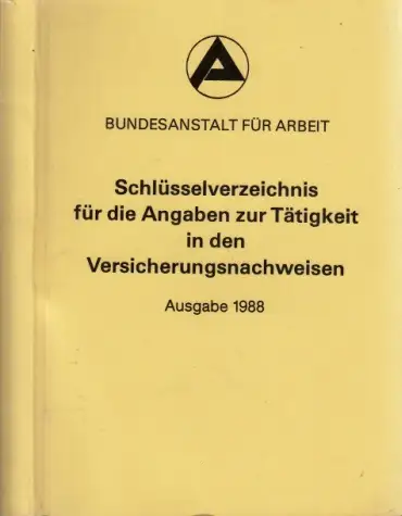 Schlüsselverzeichnis; Angaben zur Tätigkeit in denVersicherunasnachweisen; Ausgabe 1988; Sachbuch; Nachschlagewerk