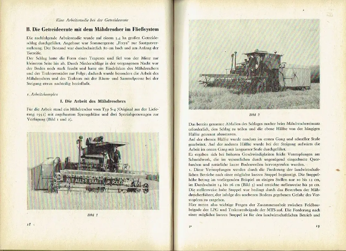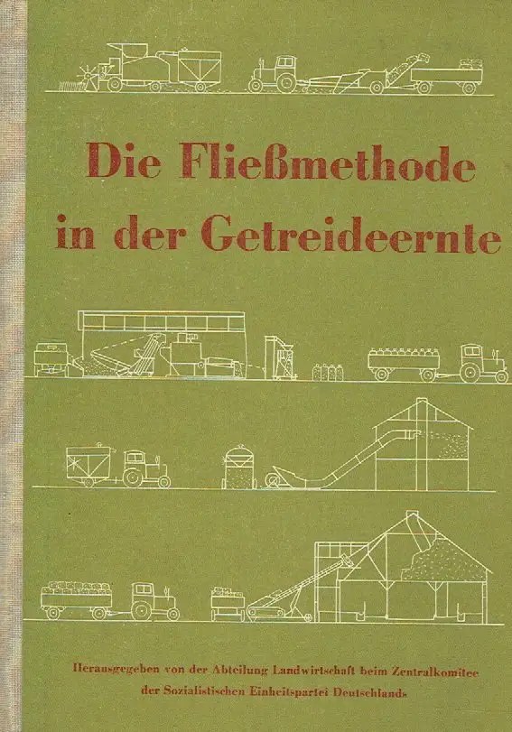 guter bis sehr guter Zustand, geringe Gebrauchs- und Alterungsspuren: Einband und Vorsatz teils minimal fleckig - Papier teils etwas vergilbt, aber Seiten sauber und ordentlich - Beilage unbenutzt, In dem vorliegenden Band gibt die Abteilung Landwirtschaft beim ZK der SED eine Anleitung für die Durchführung der Getreideernte im Fließsystem auf der Grundlage der modernsten Technik von Kombines heraus. Die Übermittlung der Erfahrungen, die durch eine Brigade des Zentralkomitees der SED bei der Durchführung einer Arbeitsstudie in der MTS Klettstedt und der LPG Merxleben gesammelt wurden, soll dazu beitragen, allen Traktoristen, Brigadieren und Funktionären der MTS, Landarbeitern und Funktionären der VEG, allen Genossenschaftsbauern und werktätigen Einzelbauern der ständigen Arbeitsgemeinschaften der VdgB (BHG) zu helfen, die Ernte erfolgreich im Fließsystem einzubringen. Es sind eine große Anzahl von Schlußfolgerungen und Hinweisen enthalten, deren Beachtung die MTS und landwirtschaftlichen Betriebe befähigen wird, mit Hilfe der der Landwirtschaft in der DDR zur Verfügung stehenden modernen Technik und ihrem Einsatz im Fließsystem die Arbeitsproduktivität zu steigern, die Senkung der Selbstkosten und die Verminderung der Verluste bei der Getreideernte beispielhaft zu verwirklichen. Die Durchführung der Getreideernte besonders mit dem Mähdrescher im Fließsystem ist ein wichtiges Mittel, den Ministerratsbeschluß vom to. März 1955 zu verwirklichen. Sie ist die geeignetste Methode, die Getreideernte schnell und verlustlos zu bergen und schafft die günstigsten Voraussetzungen, die Ablieferung des Getreides an den Staat rechtzeitig durchzuführen. Durch das Ziehen der Schälfurche und Einsaat der Zwischenfrucht 24 Stunden nach der Mahd bzw. Mähdrusch schafft sie die günstigsten Voraussetzungen für die folgende Frucht und trägt somit ebenso wie durch die Senkung der Ernteverluste unmittelbar zur Steigerung der Hektarerträge bei und mehrt die Bodenfruchtbarkeit. Die Darlegungen über die Fließmethode bei der Getreideernte, wie sie in der LPG Merxleben durchgeführt wurde, ist nicht nur eine fachliche und organisatorische Frage, sondern zeigt mit aller Klarheit die Hilfe unserer Arbeiter- und Bauernmacht für die werktätigen Bauern. Sie zeigt, daß nur unter der Leitung des Staates durch die Arbeiter und Bauern selbst eine solche Technik den werktätigen Bauern zur Verfügung gestellt werden kann, die die Arbeitsproduktivität höchstmöglich steigert, die Kosten der Produktion entscheidend senkt, die Ernte schnell und verlustlos einbringen hilft und eine Arbeitsorganisation ermöglicht, die eine hohe Auslastung der Technik garantiert. Unsere Traktoristen und Kombinefahrer der MTS, die wie in der MTS Klettstedt hohe Leistungen erzielten, zeichnen sich durch großen Enthusiasmus und vor allem dadurch aus, daß sie die Technik gut beherrschen und die Arbeit beispielhaft organisieren. Ihrem Vorbild zu folgen, sind alle Traktoristen und Kombinefahrer für die diesjährige Ernte aufgerufen. Das Buch dient dazu, die besten Erfahrungen der Organisation des Einsatzes der Technik zu vermitteln, Halbleinen, ca. 15 x 21, 98 Seiten mit 40 Bildern und Grafiken sowie einer Beilage zum Ausfalten