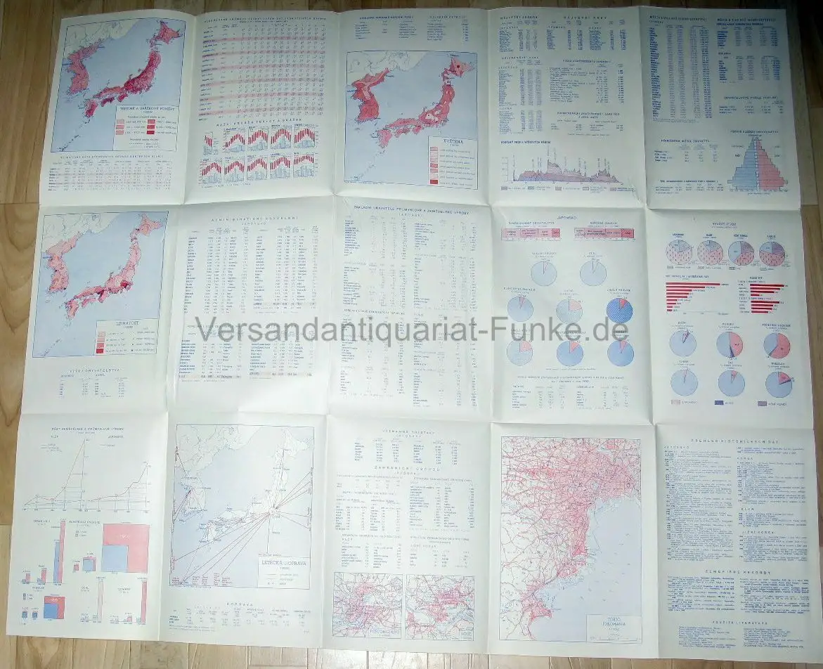 sehr guter Zustand, geringe Gebrauchs- und Alterungsspuren: Mappe gering abgenutzt - Karte tadellos, Kartenmappe von Japan und Korea - Textová cást: - Úvod - Japonsko - Korea - Korejská lidove demokratická republika - Jižní Korea - Obrazová cást - Rejstrík - Mapová cást — príloha: - JAPONSKO A KOREA, mer. 1: 3 000 000 - Hospodárský prehled, mer. 1: 9 000000 - Politický prehled, mer. 1 :18 000000, kartoniert, ca. 19 x 26, Textbroschüre mit 42 Seiten und 12 Bildtafeln sowie 1 große Falttafel in einer Mappe