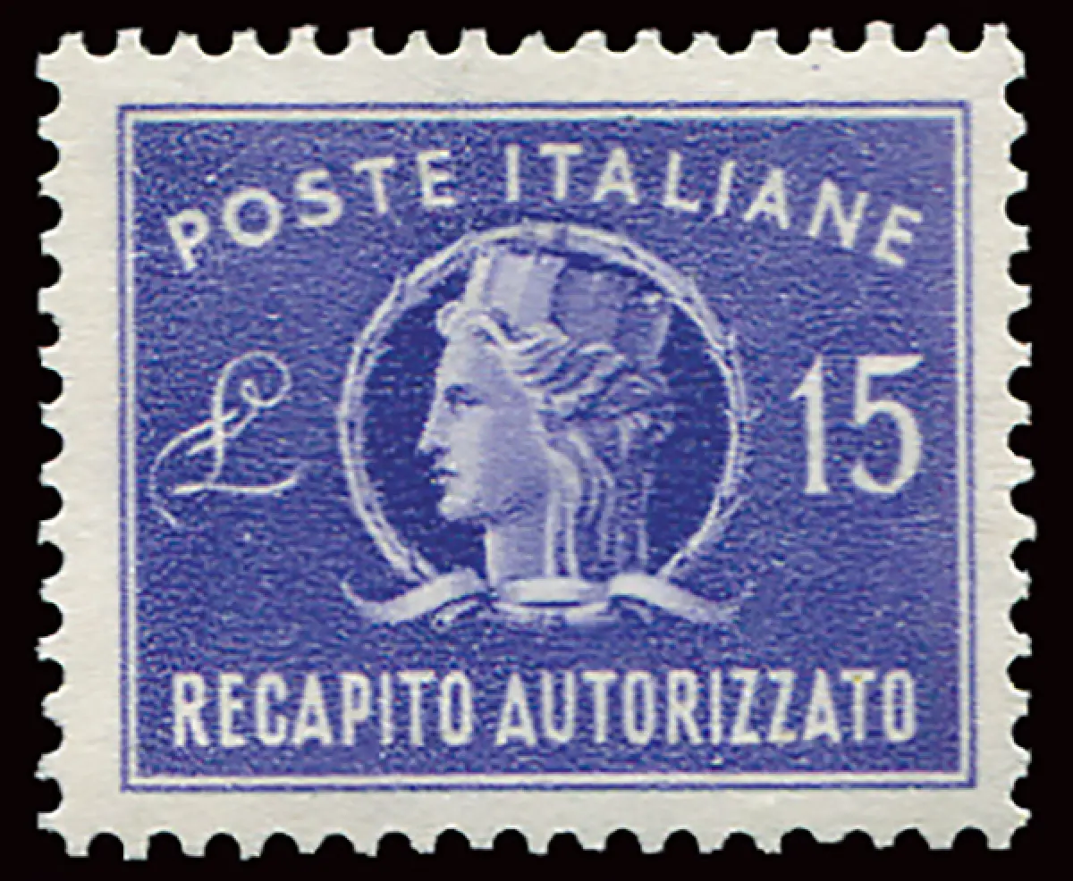 Autorisierte Zustellung Lire 15 Wasserzeichen in Position DB Vollgummi MNH - Autorisierte Zustellung Lire 15 Nr. 10 Wasserzeichen in Position DB sehr gut zentriert - Selten - 225 Cod. 781/15