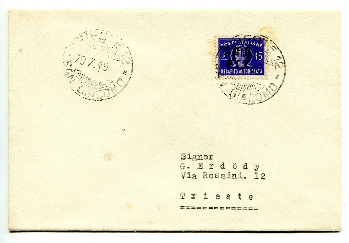 Autorisierte Zustellung Lire 15 storniert auf Umschlag am 29.7.49 - vorzeitiges Datum - Autorisierte Zustellung Lire 15 Nr. 3 storniert auf Umschlag am 29.7.49 - einen Tag vor dem in den Katalogen veröffentlichten Ausstellungsdatum - nicht gereist Code 982/3