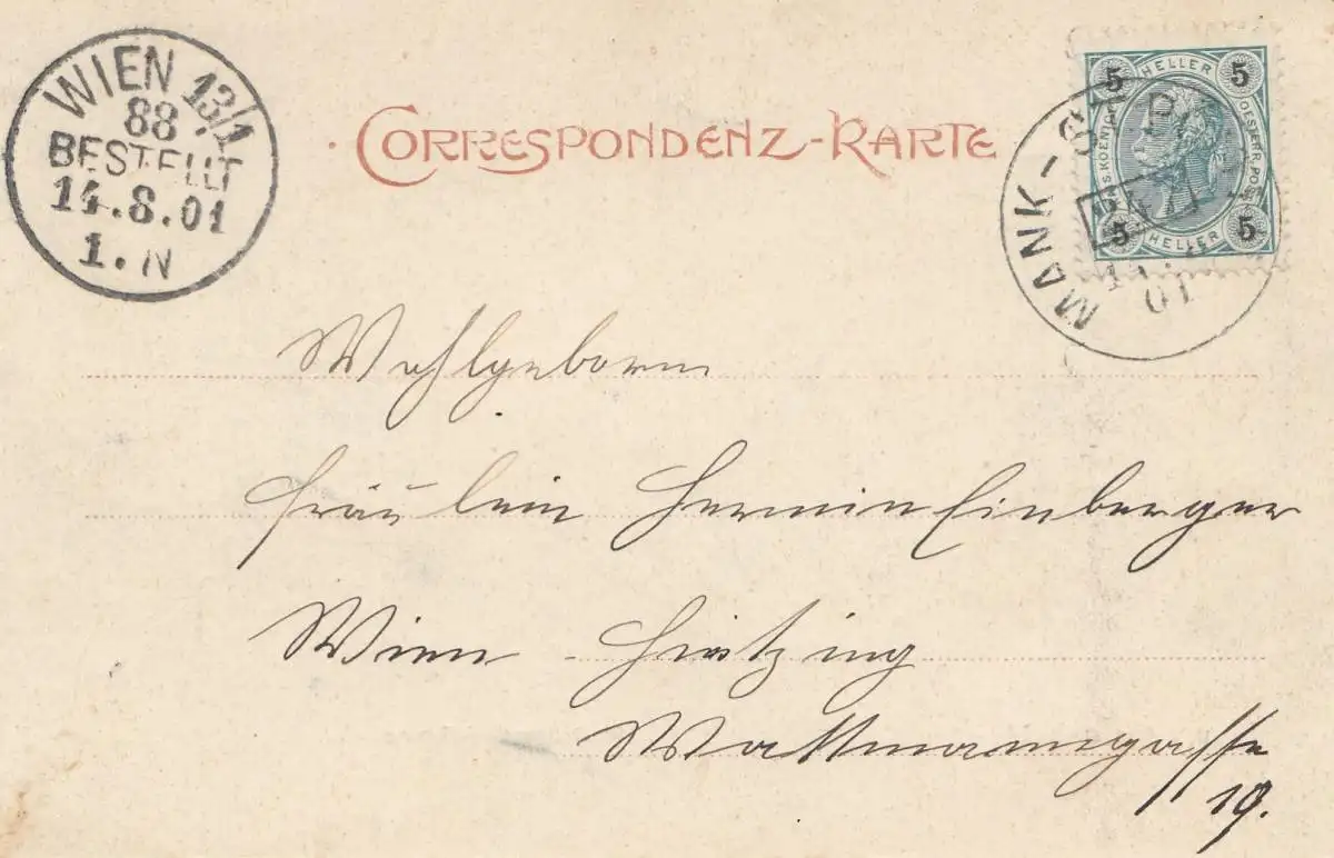 Autriche: 1901: Carte de vue: Mankthal vers Vienne