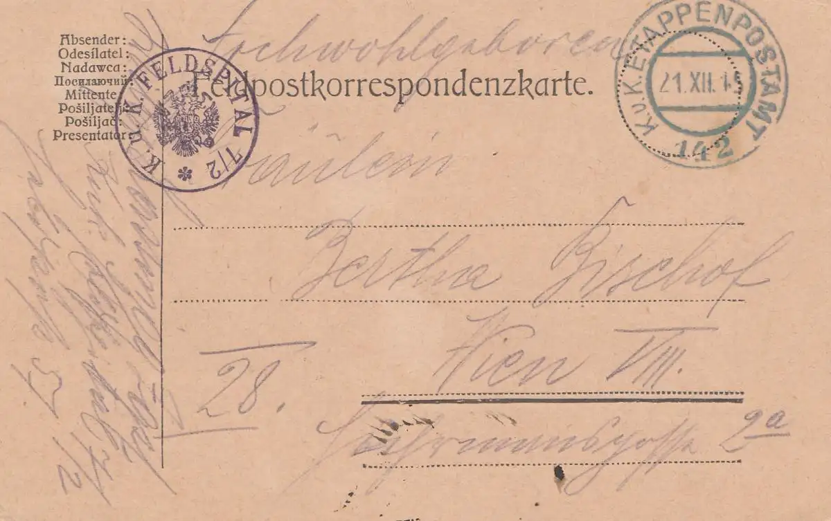 Autriche: 1915: kuk Postpost Office d'étapes à Vienne