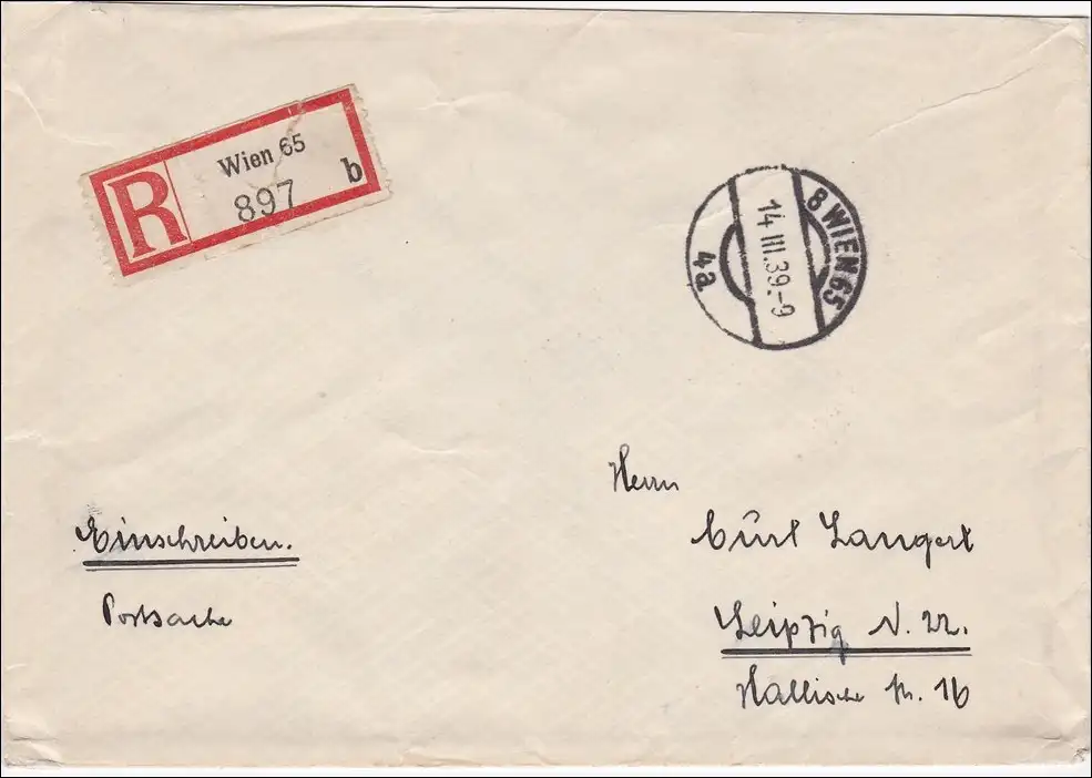 Autriche: 1939, lettre recommandée de Vienne à Leipzig