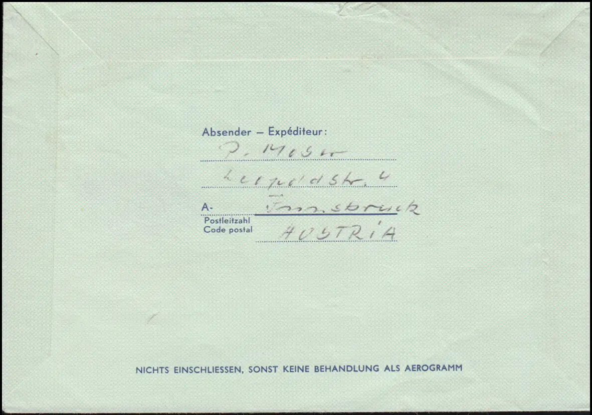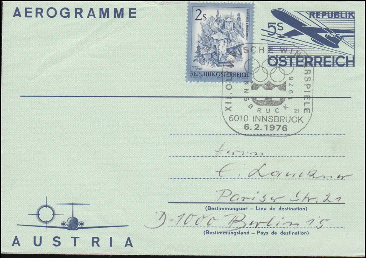 Autriche Aerogrammes LF 16 avec supplément Fr. SSt INNSBRUCK Olympia 6.2.1976