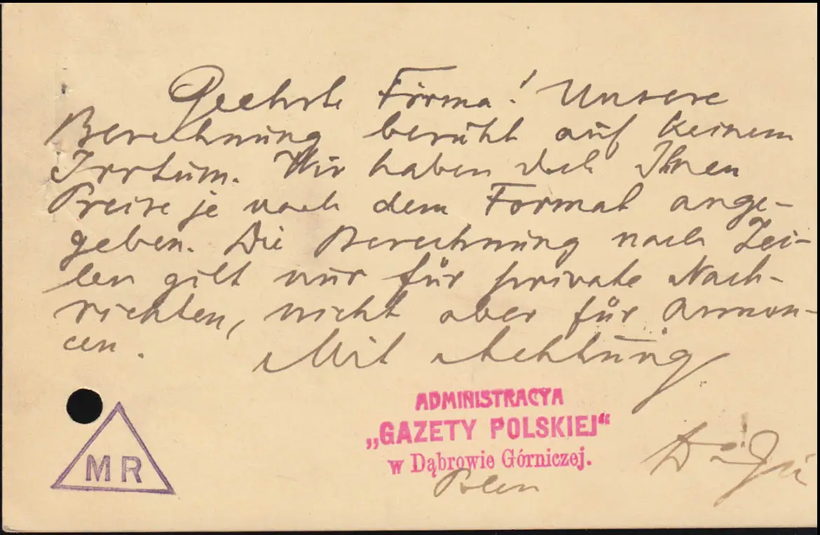 Post autrichien-hongrois / K.u.K. (Impérial et Royal) Post, timbre rouge "Kruppmando Dabrowa" vers Vienne / cachet d'entrée 4.10.1915, trou du dossier Numéro de catalogue: FP2 Vérification: original Numéro d ' article: 0100041722>P>Remarque: Cet article n'est disponible qu'une fois. Vous recevrez exactement l'article représenté.