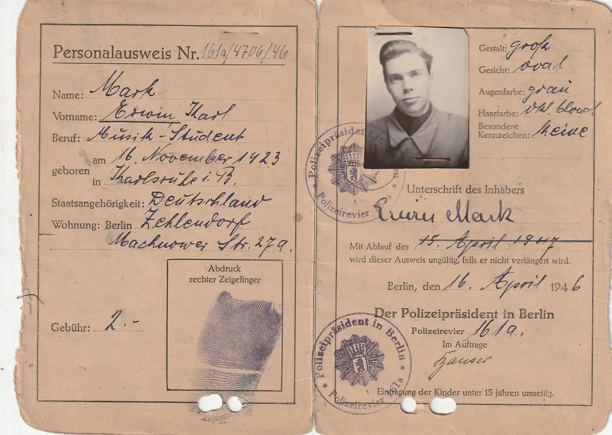 BEHELFSMÄSSIGER PERSONALAUSWEIS BERLIN 1946