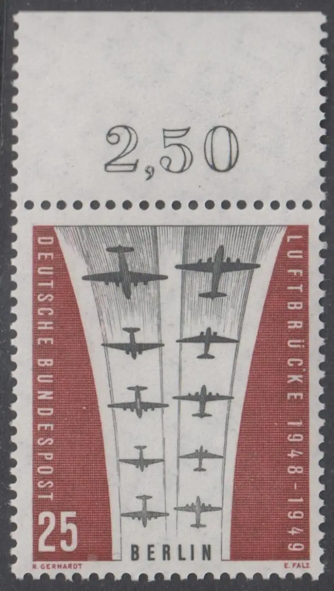 BERLIN 1959 Michel-Nummer 188 postfrisch EINZELMARKE RAND oben (a) - Berliner Luftbrücke