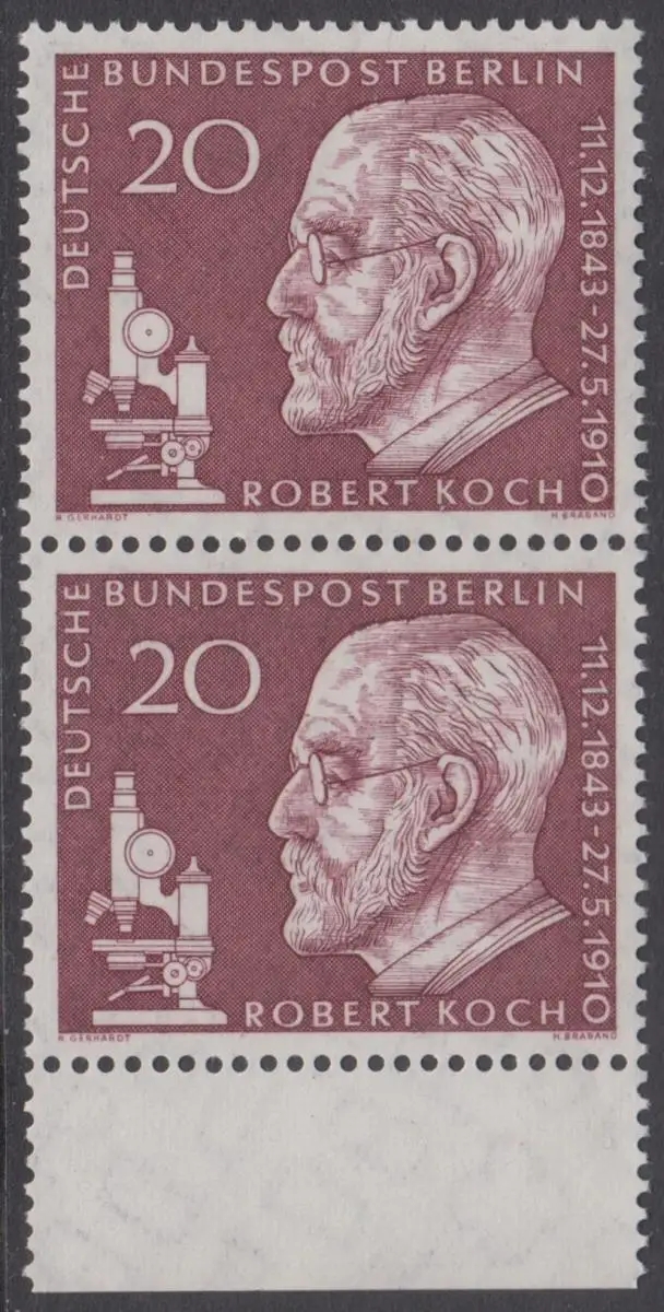 BERLIN 1960 Michel-Nummer 191 postfrisch vert.PAAR RAND unten - Todestag von Robert Koch