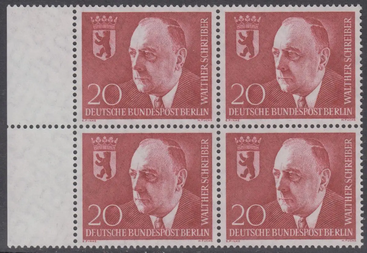 BERLIN 1960 Michel-Nummer 192 postfrisch BLOCK RÄNDER links - Todestag von Walther Schreiber, Politiker