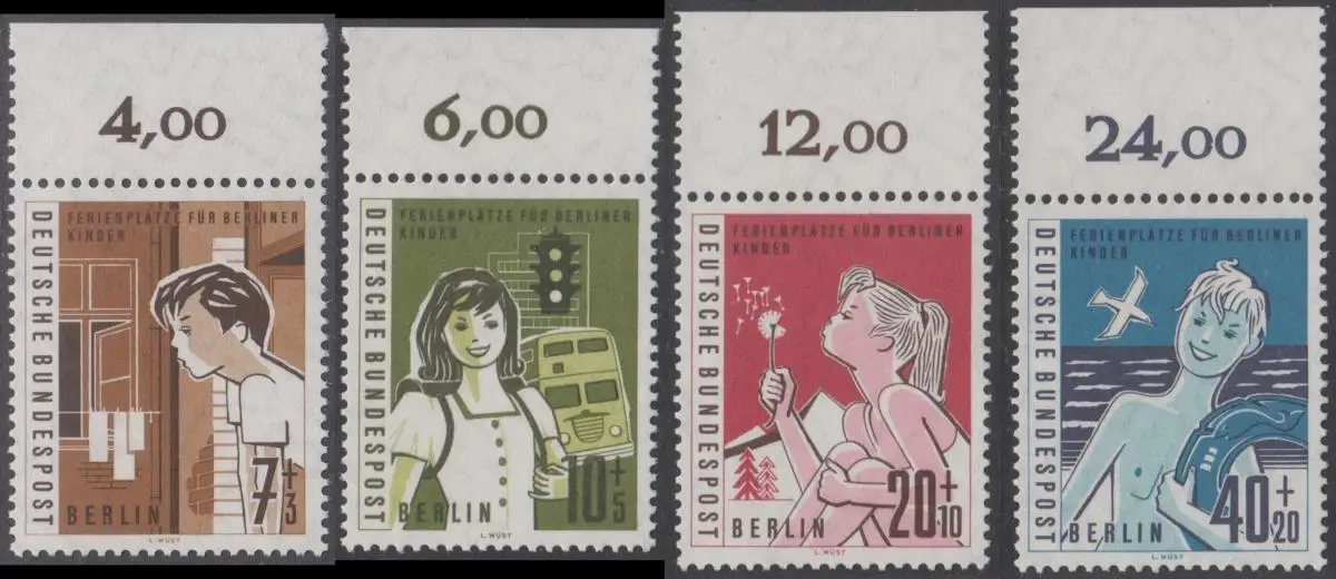BERLIN 1960 Michel-Nummer 193-196 postfrisch SATZ(4) EINZELMARKEN Ränder oben (g) - Hilfswerk Berlin: Ferienplätze für Berliner Kinder