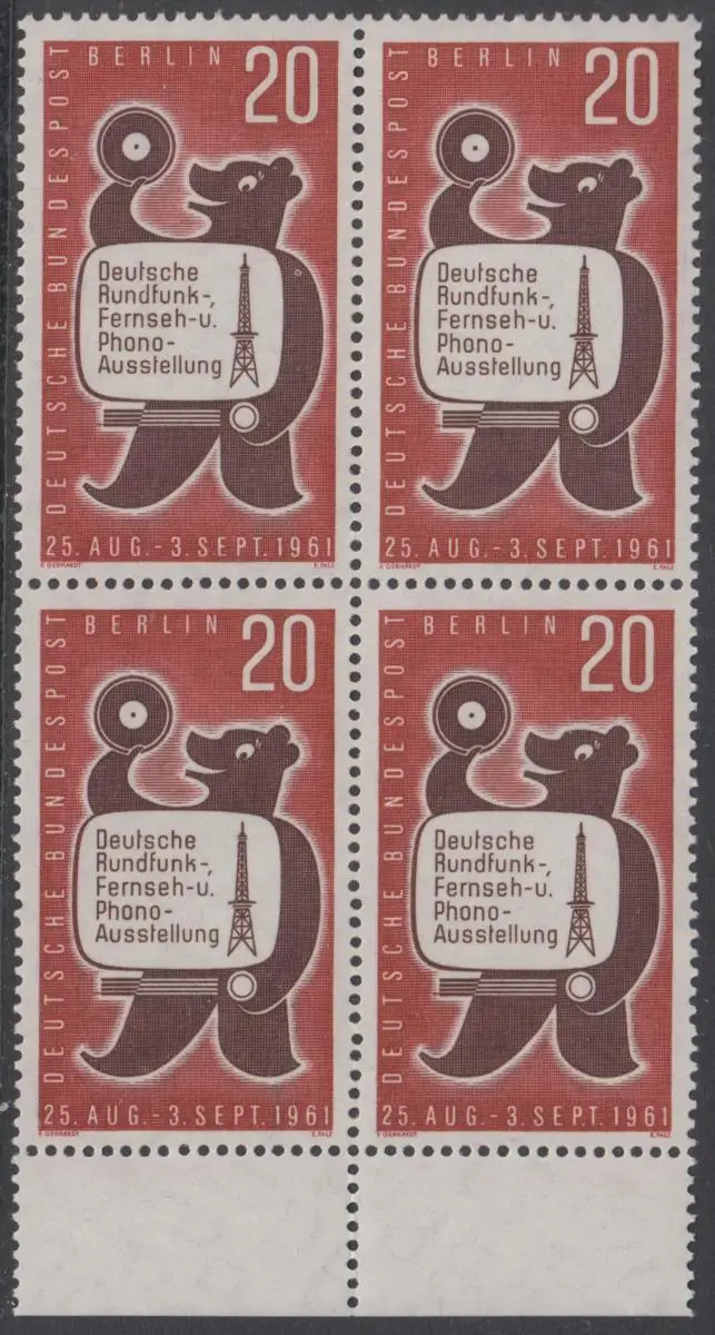 BERLIN 1961 Michel-Nummer 217 postfrisch BLOCK RÄNDER unten - Deutsche Rundfunk-, Fernseh- und Phono-Ausstellung, Berlin