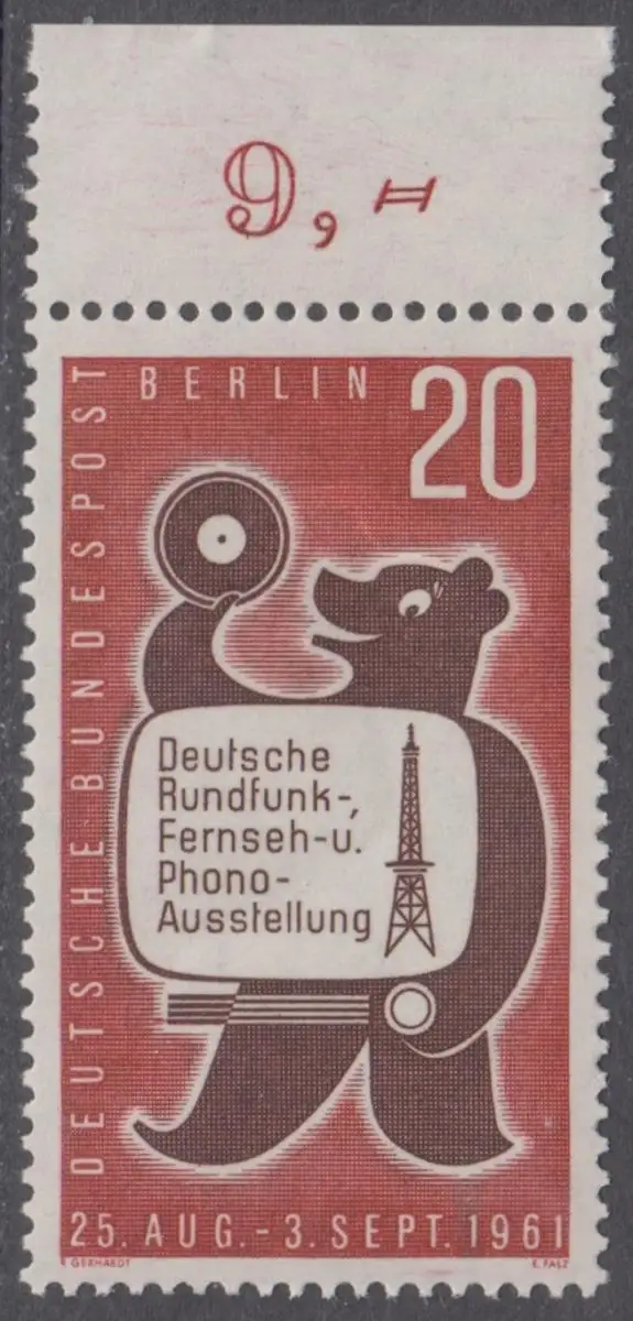 BERLIN 1961 Michel-Nummer 217 postfrisch EINZELMARKE RAND oben (k) - Deutsche Rundfunk-, Fernseh- und Phono-Ausstellung, Berlin