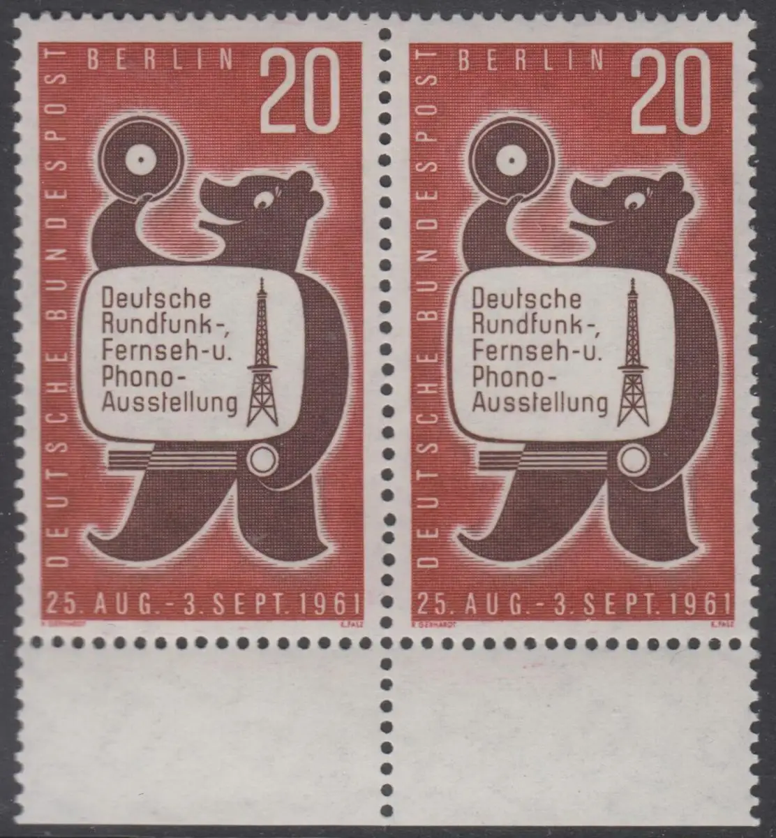 BERLIN 1961 Michel-Nummer 217 postfrisch horiz.PAAR RÄNDER unten - Deutsche Rundfunk-, Fernseh- und Phono-Ausstellung, Berlin