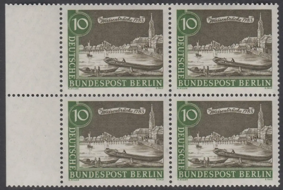 BERLIN 1962 Michel-Nummer 219 postfrisch BLOCK RÄNDER links - Alt-Berlin: Waisenbrücke