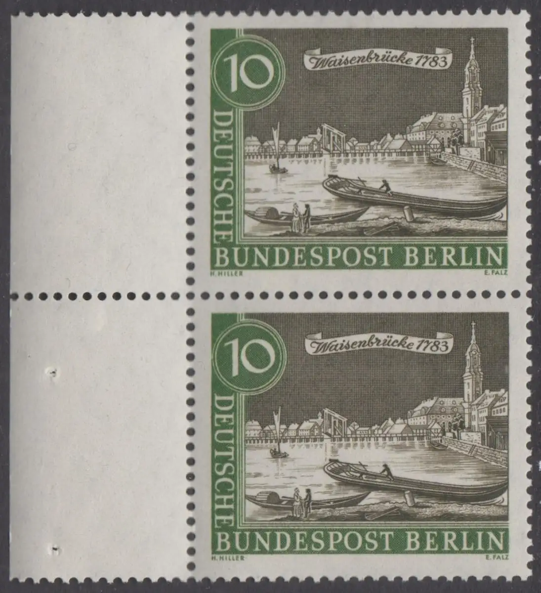 BERLIN 1962 Michel-Nummer 219 postfrisch vert.PAAR RAND links - Alt-Berlin: Waisenbrücke