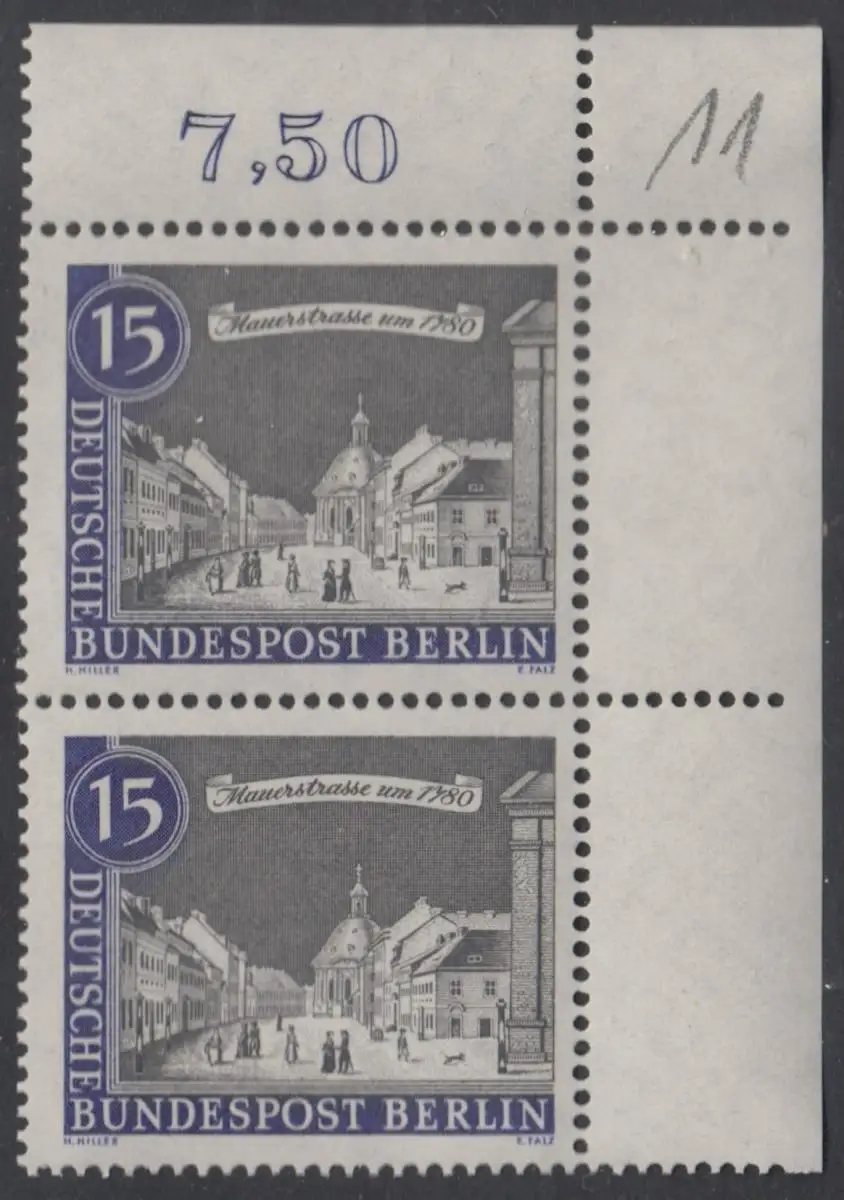 BERLIN 1962 Michel-Nummer 220 postfrisch vert.PAAR ECKRAND oben rechts - Alt-Berlin: Mauerstraße