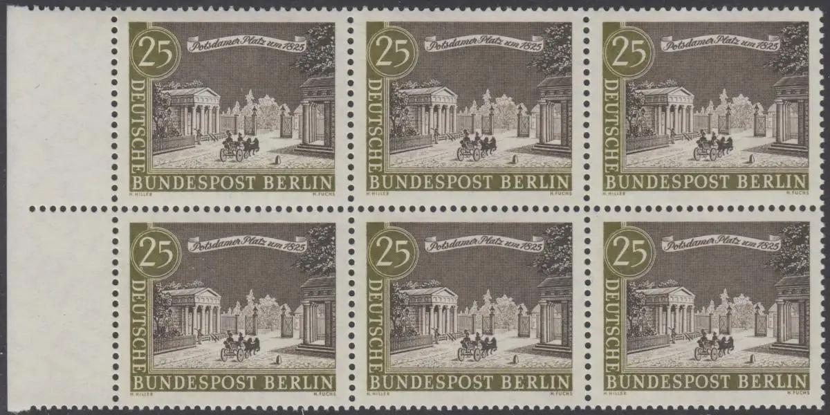 BERLIN 1962 Michel-Nummer 222 postfrisch horiz.BLOCK(6) RÄNDER links - Alt-Berlin: Potsdamer Platz