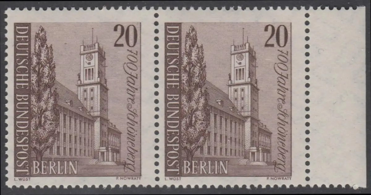 BERLIN 1964 Michel-Nummer 233 postfrisch horiz.PAAR RAND rechts - Schöneberg, Rathaus