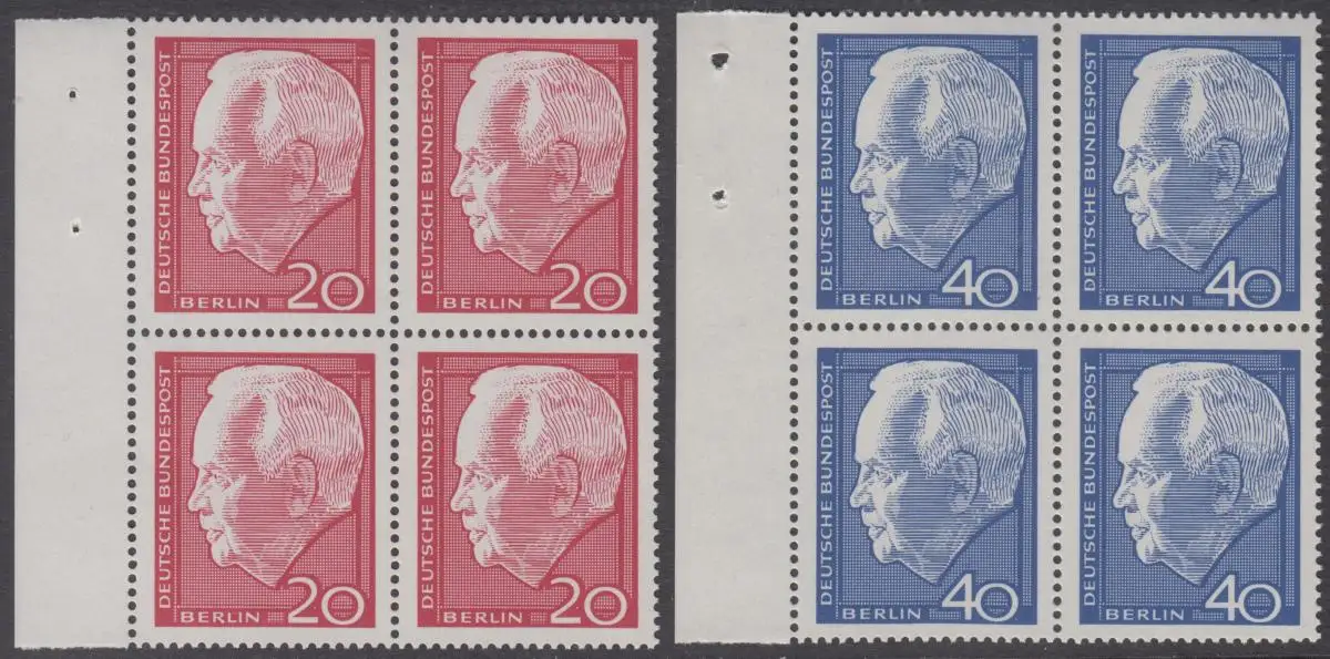 BERLIN 1964 Michel-Nummer 234-235 postfrisch SATZ(2) BLÖCKE RÄNDER links - Wiederwahl des Bundespräsidenten Heinrich Lübke