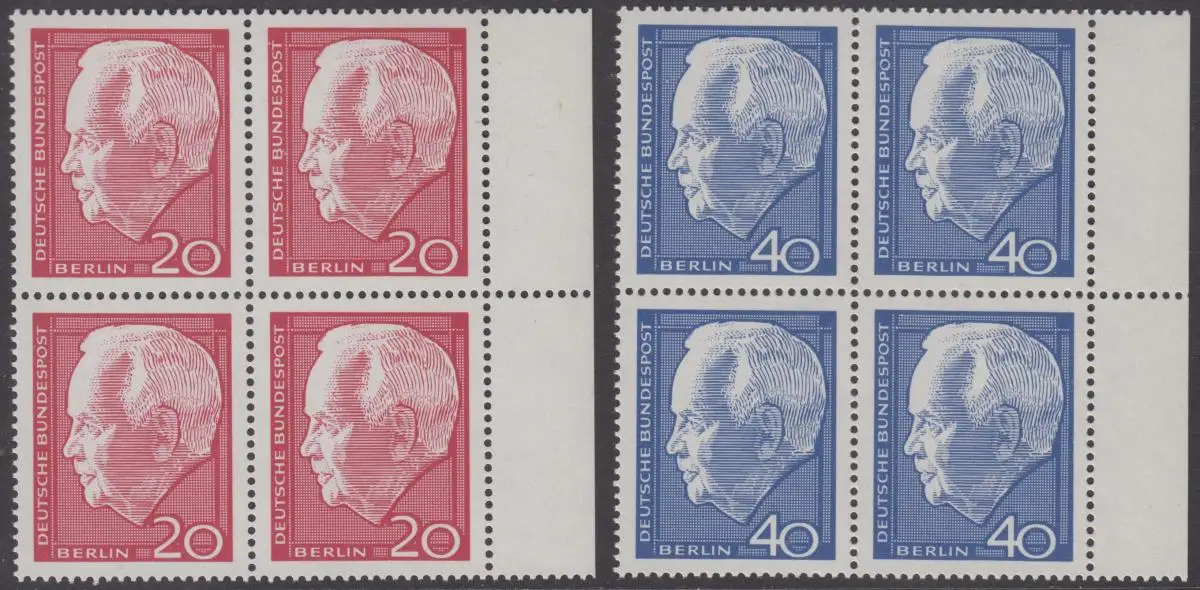 BERLIN 1964 Michel-Nummer 234-235 postfrisch SATZ(2) BLÖCKE RÄNDER rechts - Wiederwahl des Bundespräsidenten Heinrich Lübke