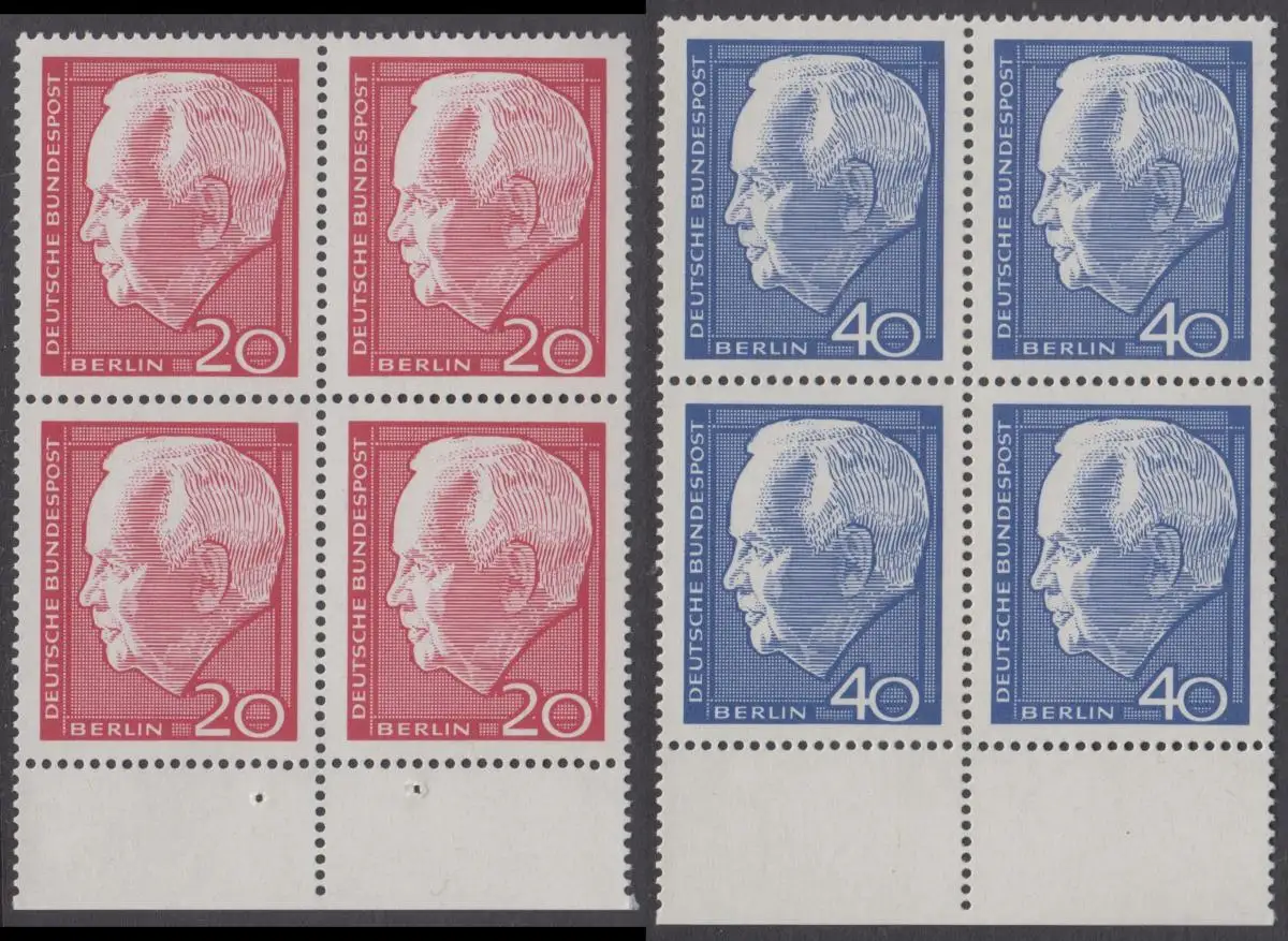 BERLIN 1964 Michel-Nummer 234-235 postfrisch SATZ(2) BLÖCKE RÄNDER unten - Wiederwahl des Bundespräsidenten Heinrich Lübke