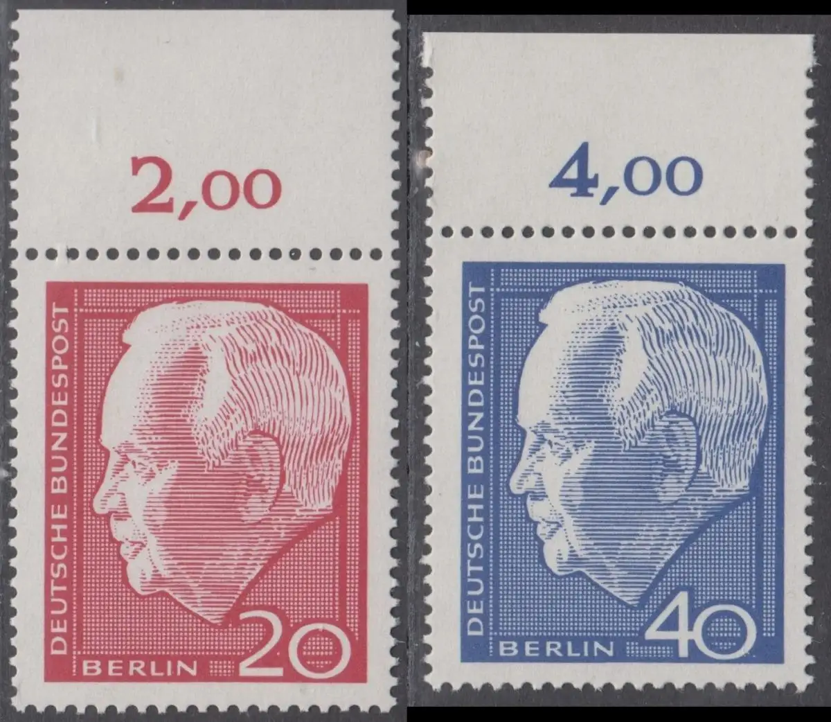 BERLIN 1964 Michel-Nummer 234-235 postfrisch SATZ(2) EINZELMARKEN RÄNDER oben (a) - Wiederwahl des Bundespräsidenten Heinrich Lübke