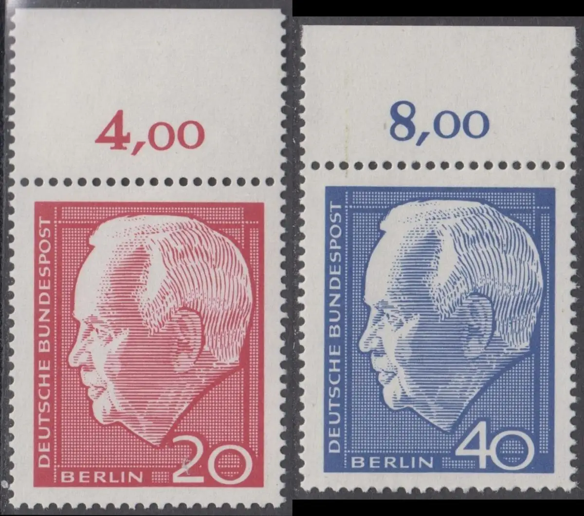 BERLIN 1964 Michel-Nummer 234-235 postfrisch SATZ(2) EINZELMARKEN RÄNDER oben (c) - Wiederwahl des Bundespräsidenten Heinrich Lübke