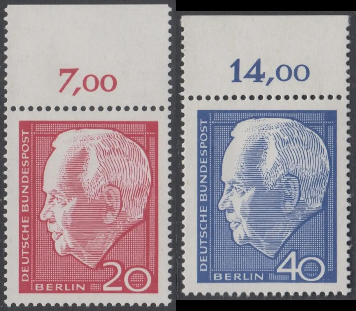 BERLIN 1964 Michel-Nummer 234-235 postfrisch SATZ(2) EINZELMARKEN RÄNDER oben (f) - Wiederwahl des Bundespräsidenten Heinrich Lübke
