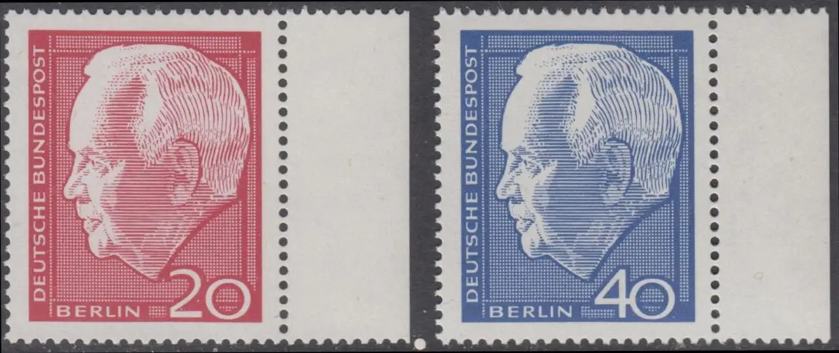 BERLIN 1964 Michel-Nummer 234-235 postfrisch SATZ(2) EINZELMARKEN RÄNDER rechts - Wiederwahl des Bundespräsidenten Heinrich Lübke