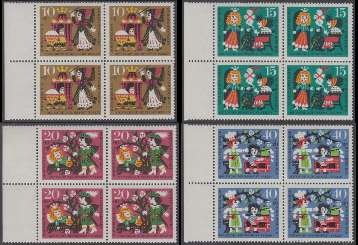 BERLIN 1964 Michel-Nummer 237-240 postfrisch SATZ(4) BLÖCKE RÄNDER links - Märchen der Gebrüder Grimm: Dornröschen