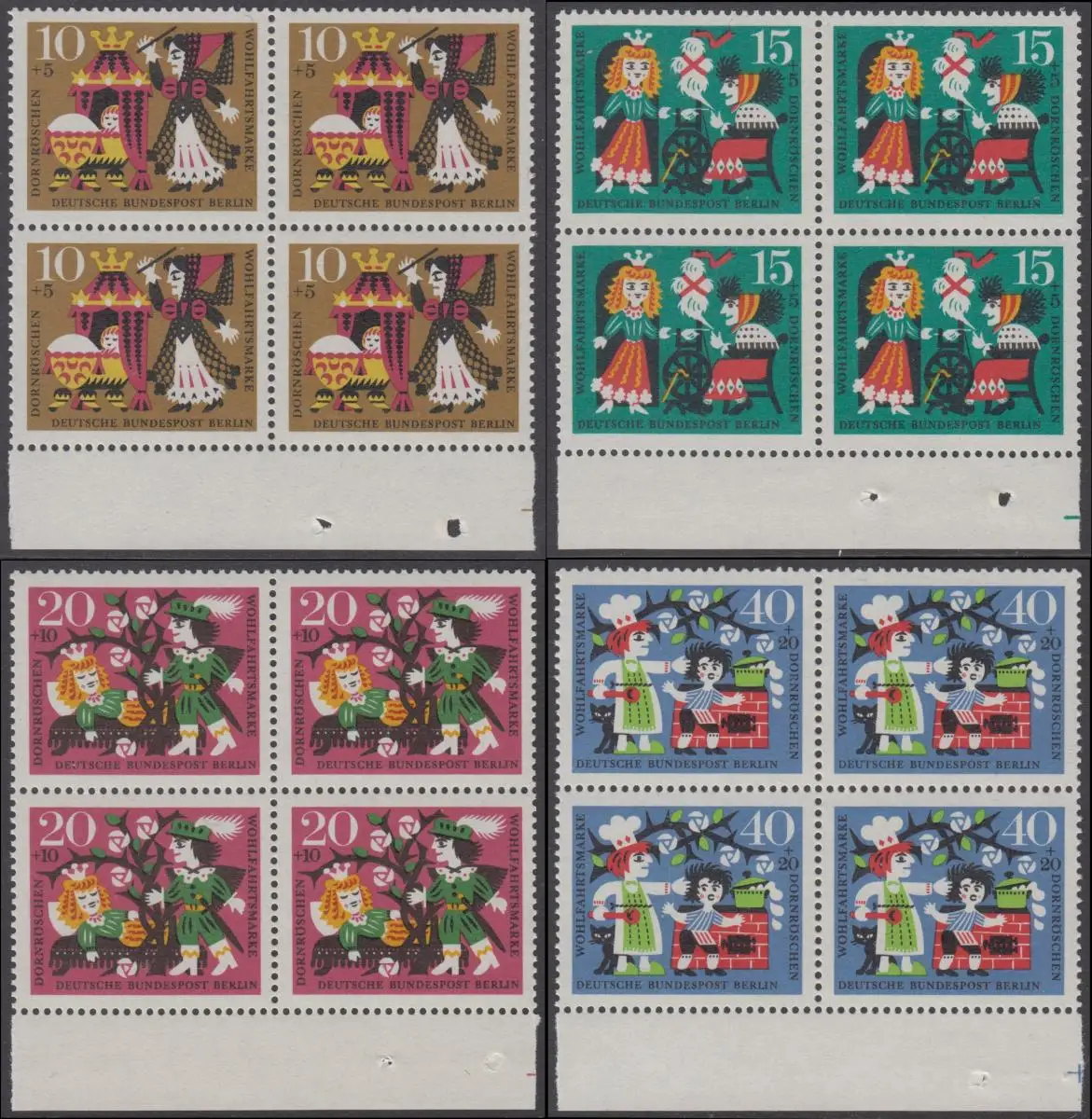 BERLIN 1964 Michel-Nummer 237-240 postfrisch SATZ(4) BLÖCKE RÄNDER unten - Märchen der Gebrüder Grimm: Dornröschen