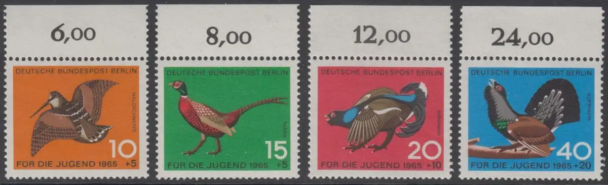 BERLIN 1965 Michel-Nummer 250-253 postfrisch SATZ(4) EINZELMARKEN RÄNDER oben (c) - Jagdbares Federwild
