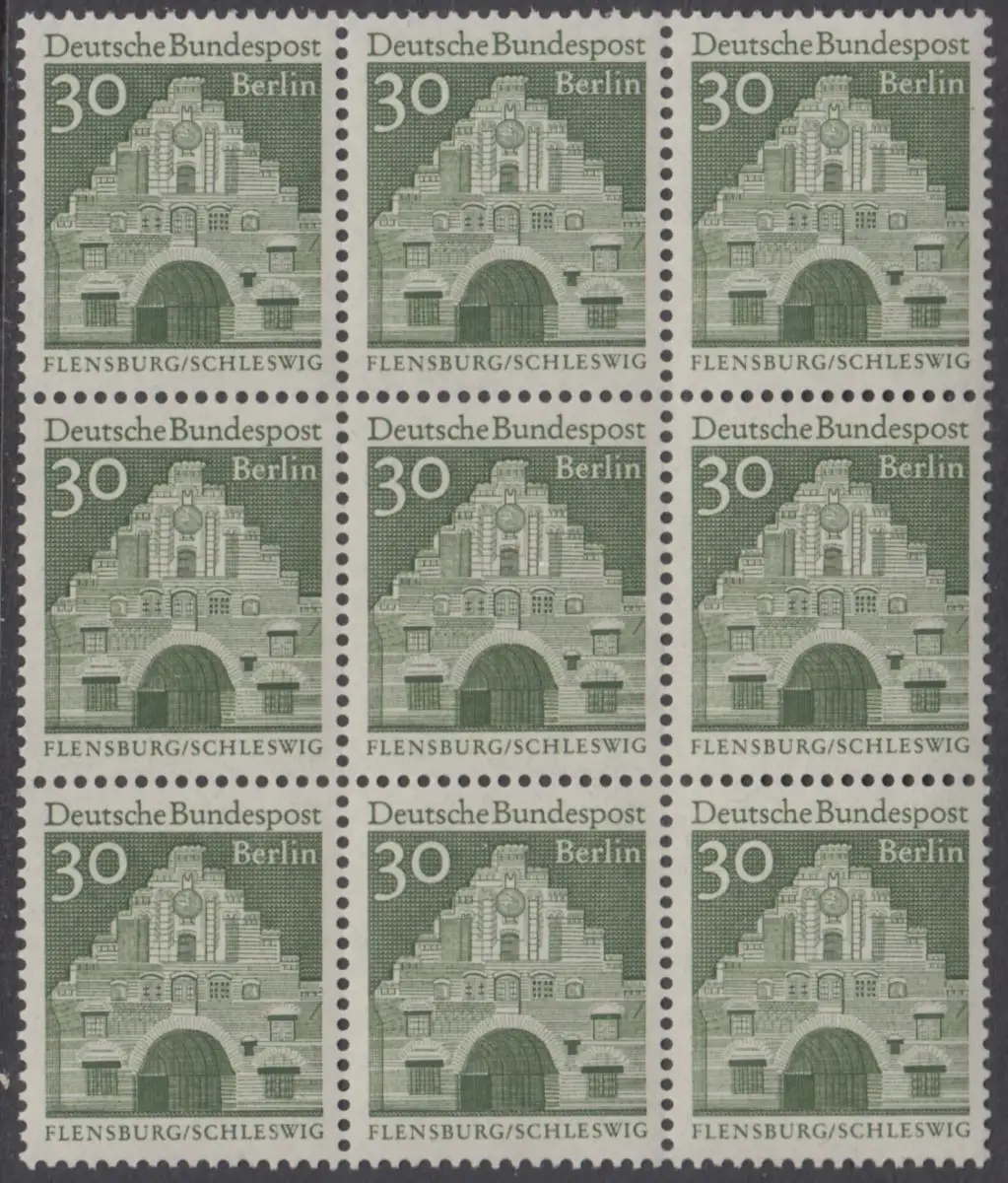 BERLIN 1966 Michel-Nummer 274 postfrisch BLOCK(9) - Deutsche Bauwerke aus zwölf Jahrhunderten: Nordertor, Flensburg