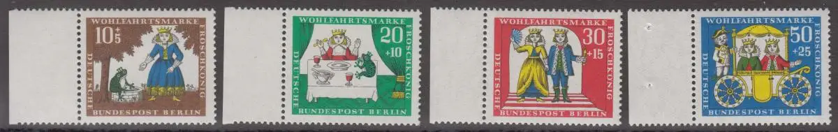 BERLIN 1966 Michel-Nummer 295-298 postfrisch SATZ(4) EINZELMARKEN RÄNDER links - Märchen der Brüder Grimm: Der Froschkönig