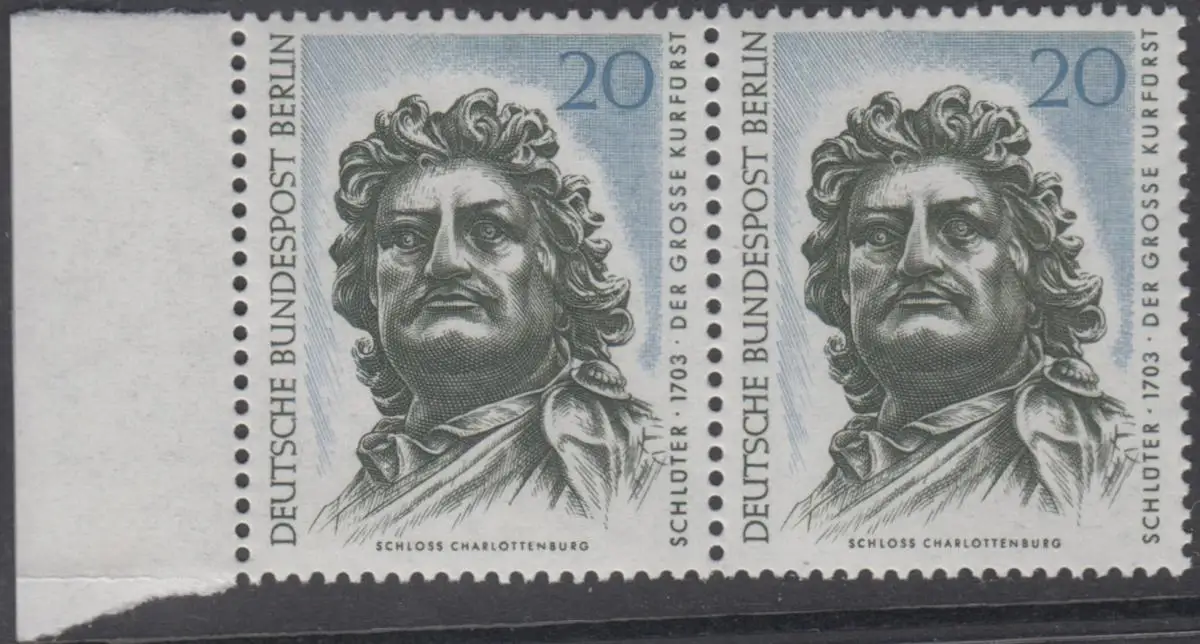 BERLIN 1967 Michel-Nummer 304 postfrisch horiz.PAAR RAND links - Berliner Kunstschätze: Der Große Kurfürst, Kopf des Reiterstandbildes
