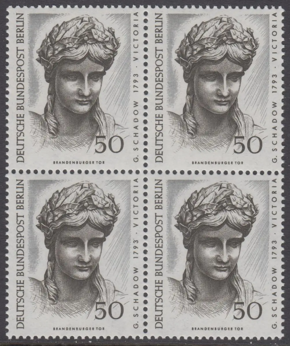 BERLIN 1967 Michel-Nummer 306 postfrisch BLOCK - Berliner Kunstschätze: Kopf der Victoria, Detail der Quadriga auf dem Brandenburger Tor