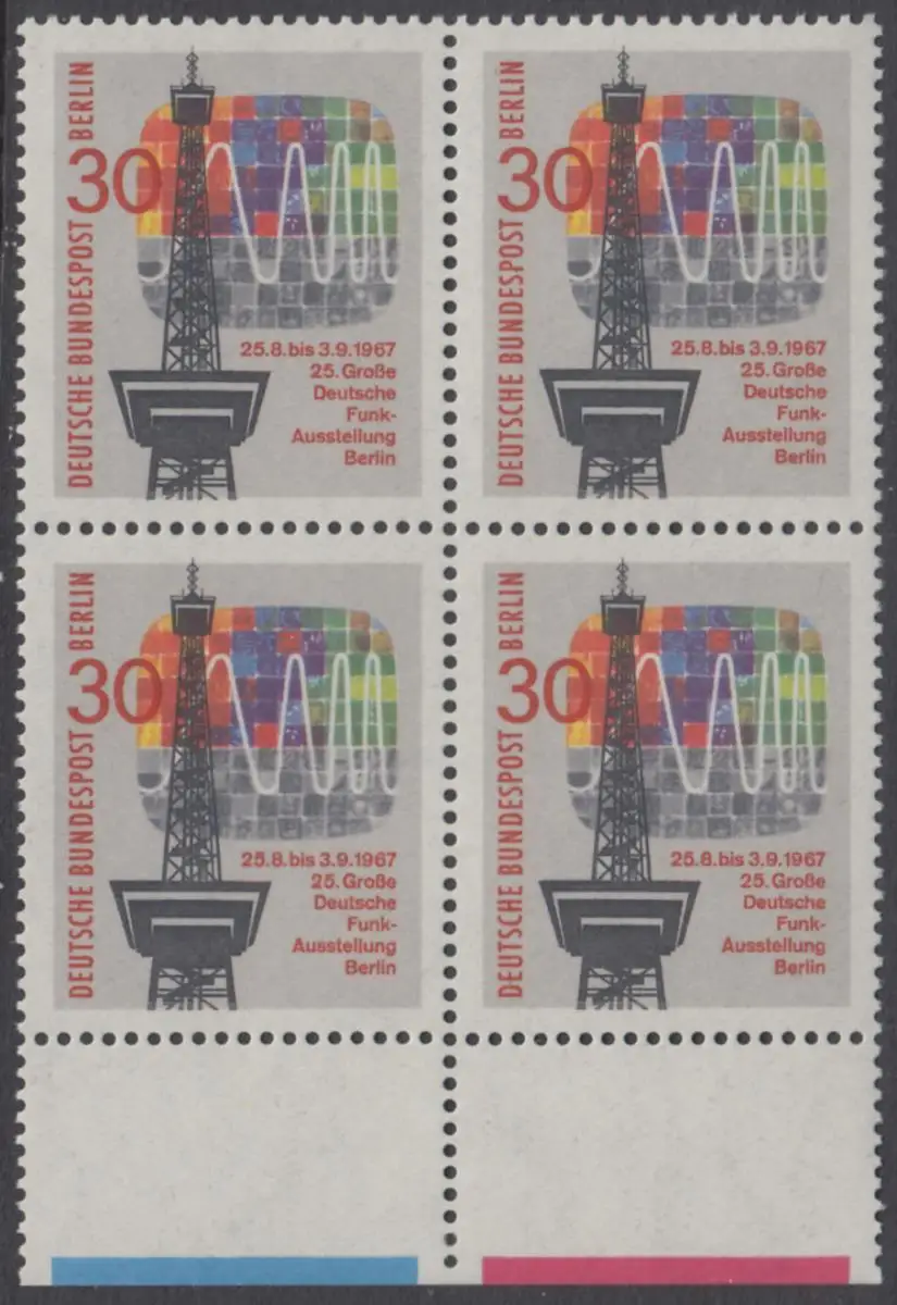 BERLIN 1967 Michel-Nummer 309 postfrisch BLOCK RÄNDER unten (a01) - Große Deutsche Funkausstellung, Berlin