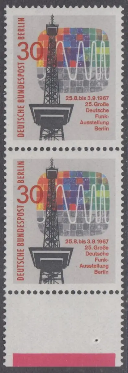 BERLIN 1967 Michel-Nummer 309 postfrisch vert.PAAR RAND unten (a) - Große Deutsche Funkausstellung, Berlin