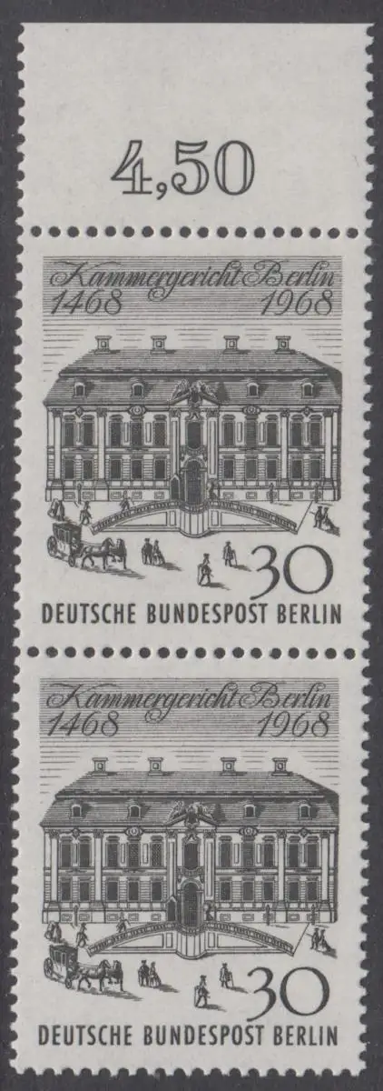 BERLIN 1968 Michel-Nummer 320 postfrisch vert.PAAR RAND oben (b) - Kammergericht Berlin