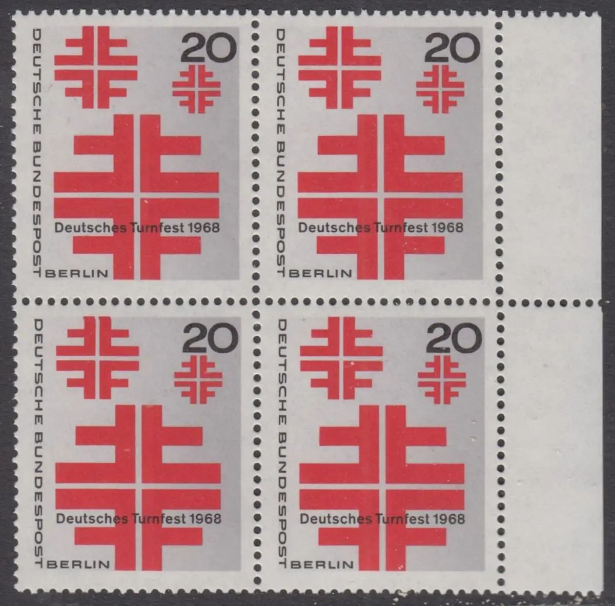 BERLIN 1968 Michel-Nummer 321 postfrisch BLOCK RÄNDER rechts - Deutsches Turnfest, Berlin