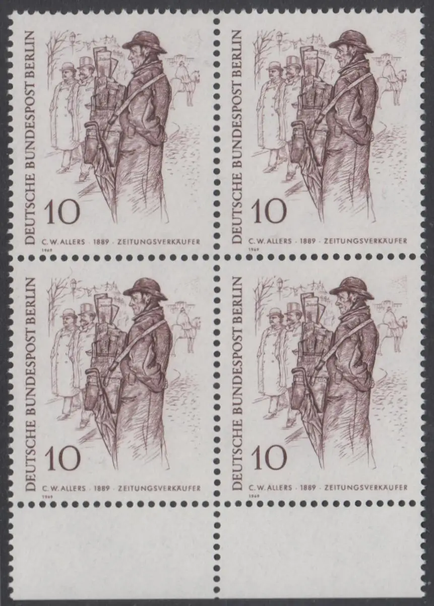 BERLIN 1969 Michel-Nummer 331 postfrisch BLOCK RÄNDER unten - Berliner des 19. Jahrhunderts: Zeitungsverkäufer