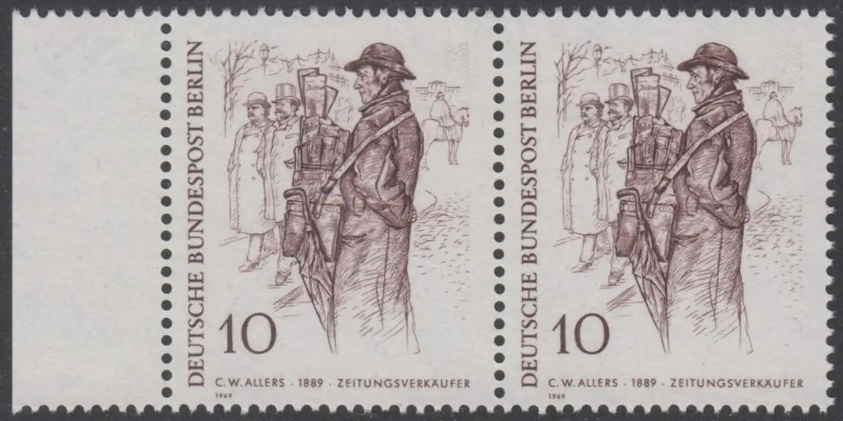 BERLIN 1969 Michel-Nummer 331 postfrisch horiz.PAAR RAND links - Berliner des 19. Jahrhunderts: Zeitungsverkäufer