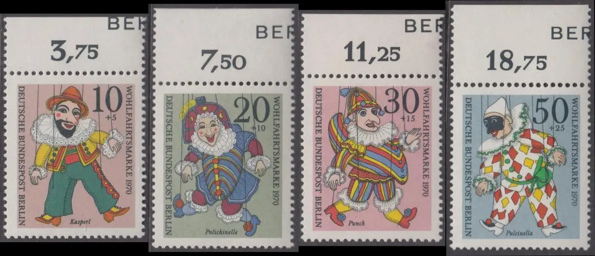BERLIN 1970 Michel-Nummer 373-376 postfrisch SATZ(4) EINZELMARKEN RÄNDER oben (g) - Marionetten