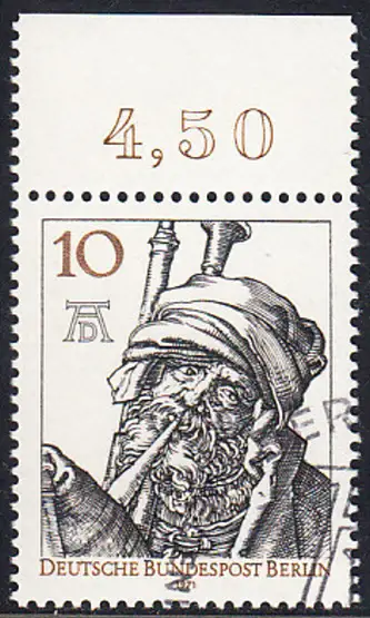 BERLIN 1971 Michel-Nummer 390 gestempelt EINZELMARKE RAND oben (f)