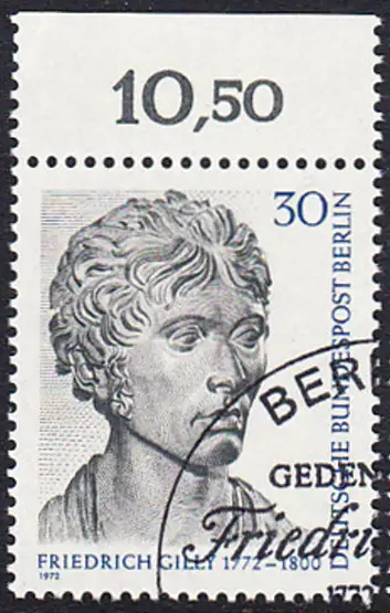 BERLIN 1972 Michel-Nummer 422 gestempelt EINZELMARKE RAND oben (e)
