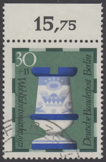 BERLIN 1972 Michel-Nummer 436 gestempelt EINZELMARKE RAND oben (b)