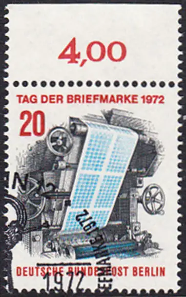BERLIN 1972 Michel-Nummer 439 gestempelt EINZELMARKE RAND oben (a/a)