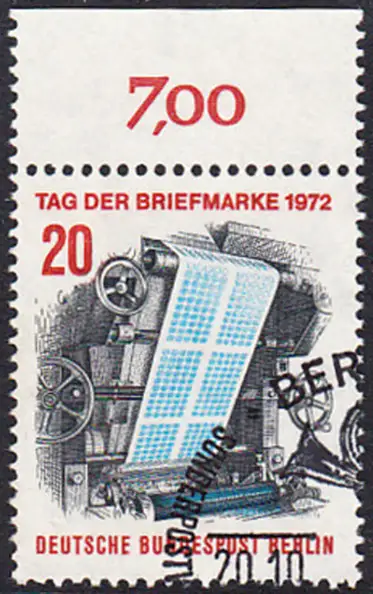 BERLIN 1972 Michel-Nummer 439 gestempelt EINZELMARKE RAND oben (d)